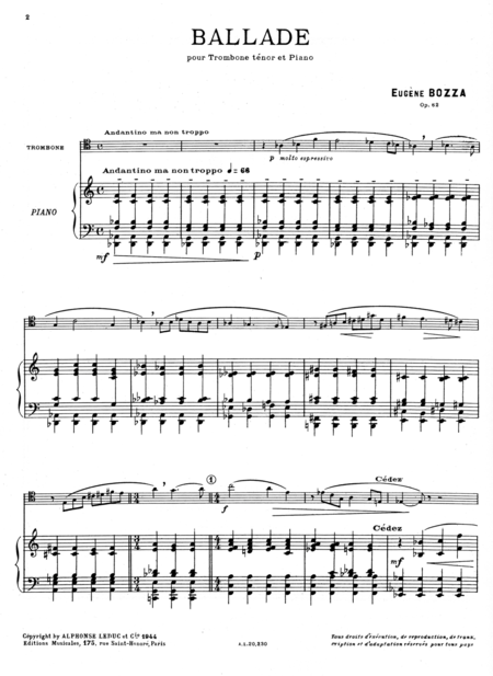 Бозза, Баллада для тромбона и фортепиано. Издание Alphonse Leduc