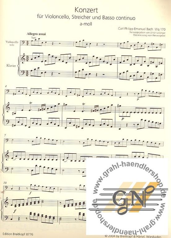 Бах К.Ф.Э. Концерт для виолончели ля минор (партия и клавир)