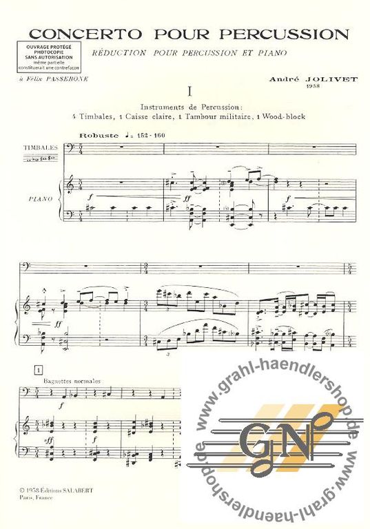 Jolivet, Andrе - Concerto pour percussion et orchestre : pour percussion et piano