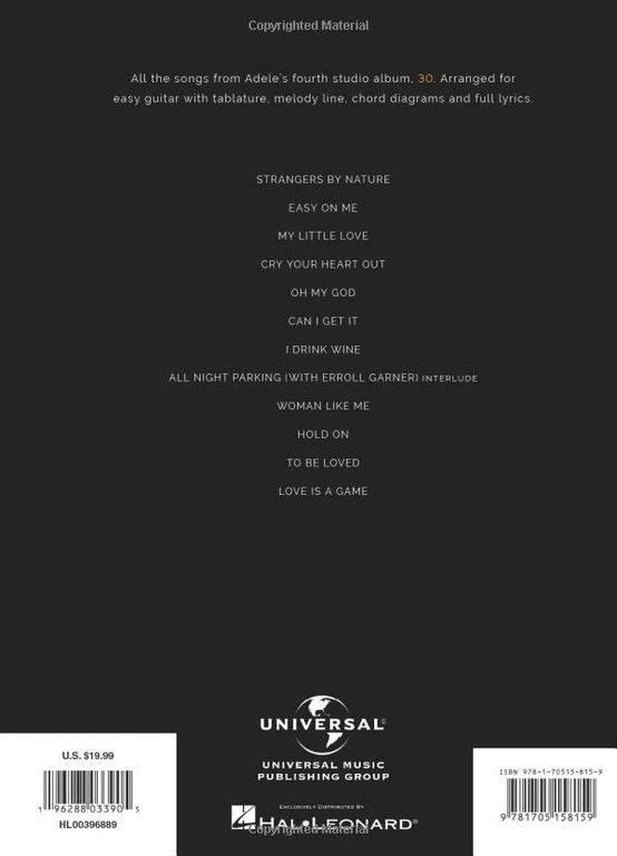 Adele - 30: Easy Guitar with Notes and Tab Songbook