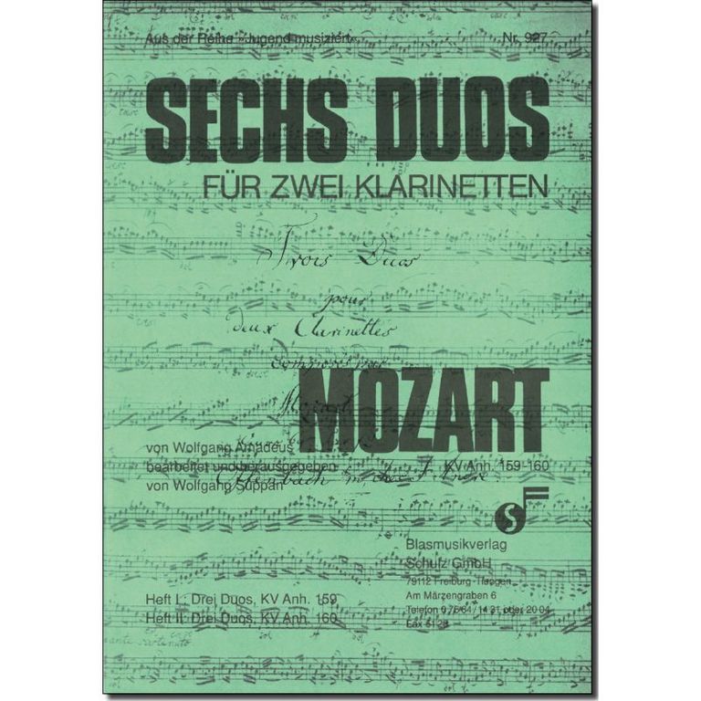 "Sechs Duos" Heft II: Drei Duos KV Anh. 160 für zwei Klarinetten von Wolfgang Amadeus Mozart bearbeitet von Wolfgang Suppan